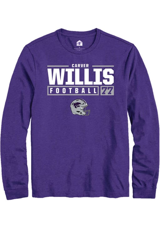 Carver Willis Rally Mens Purple K-State Wildcats NIL Stacked Box Tee