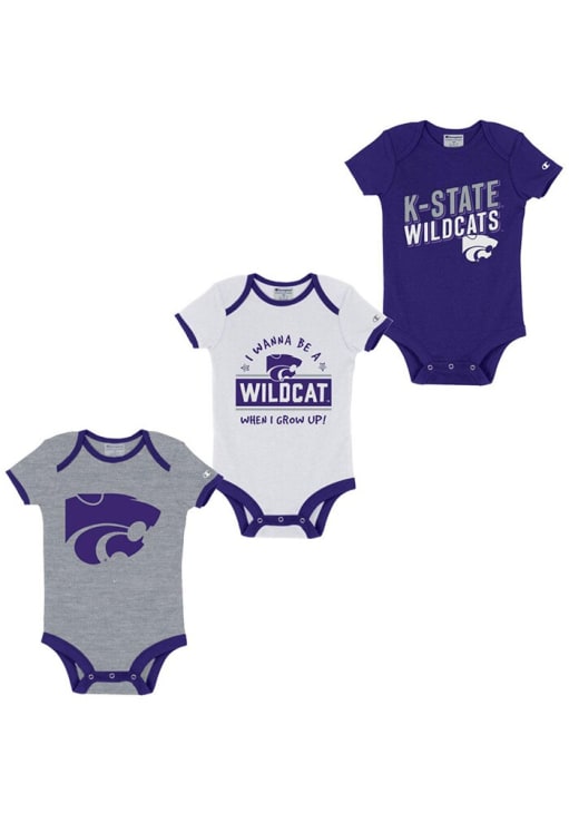 Your little Wildcats fan will look adorable in this Baby Purple K-State Wildcats team graphic trio One Piece! This K-State Wildcats Romper features a screen print team graphics on center chest.