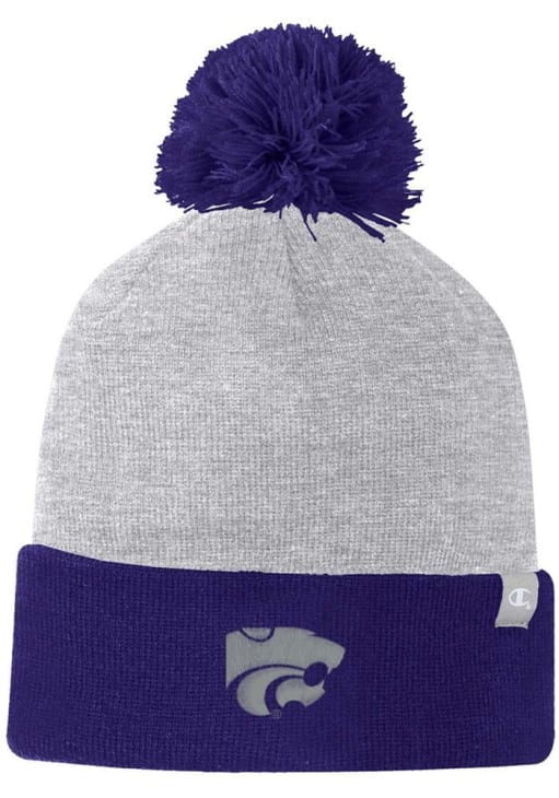 Size Chart for K-State Wildcats Champion Two Color Cuffed Beanie Pom Mens Knit Hat - Grey