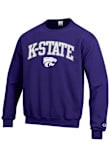 Mens K-State Wildcats Purple Champion Arch Wordmark Mascot Crew Sweatshirt