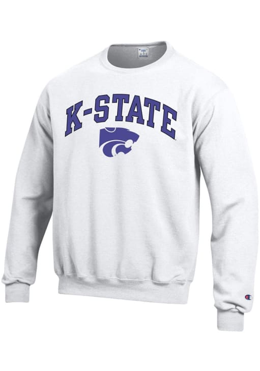 Gear up for the ultimate game day experience with this remarkable K-State WildcatsMens White Arch Mascot Crew Sweatshirt! Designed with the true fan in mind, this Wildcats Long Sleeve Crew Sweatshirt features a screen printed Kansas State name arched over Powercat mascot on front chest. Stay warm and comfortable with this Mens K-State Wildcats Wildcats Crew Sweatshirt.