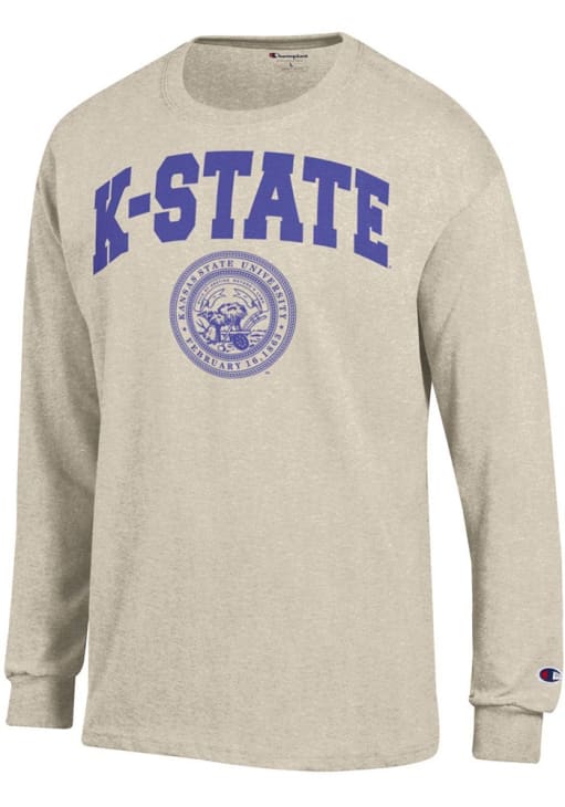 Show your K-State Wildcats spirit in this K-State Wildcats Oatmeal T Shirt! This K-State Wildcats Official Seal Long Sleeve T Shirt makes a great layer for cooler nights cheering on the Wildcats. Featuring a screen print of school name with seal graphic beneath, this K-State Wildcats Long Sleeve Tee is an essential addition for every fan. Fear The Cats!
