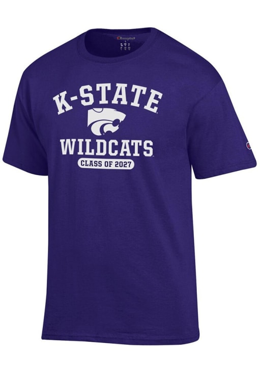 Display your team spirit with this remarkable K-State Wildcats Champion Purple Class Of 2027 Short Sleeve T Shirt! The K-State Wildcats Short Sleeve Tee showcases a a screen printed "class of" graphic on the front chest that truly sets it apart. Stand out from the crowd and proudly declare your allegiance to the Wildcats with this exceptional Purple K-State Wildcats T Shirt. Fear The Cats!