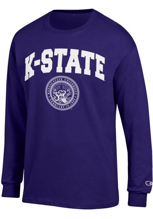 Show your K-State Wildcats spirit in this K-State Wildcats Purple T Shirt! This K-State Wildcats Official Seal Long Sleeve T Shirt makes a great layer for cooler nights cheering on the Wildcats. Featuring a screen print of school name with seal graphic beneath, this K-State Wildcats Long Sleeve Tee is an essential addition for every fan. Fear The Cats!