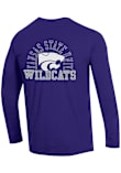Show your K-State Wildcats spirit in this K-State Wildcats Purple T Shirt! This K-State Wildcats Stadium Three Hit Design Long Sleeve T Shirt makes a great layer for cooler nights cheering on the Wildcats. Featuring a screen print team logo on front left chest, left sleeve and back, this K-State Wildcats Long Sleeve Tee is an essential addition for every fan. Fear The Cats!