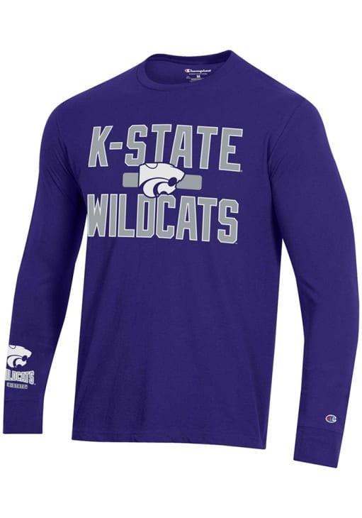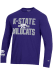 Show your K-State Wildcats spirit in this K-State Wildcats Purple T Shirt! This K-State Wildcats Stadium Three Hit Long Sleeve T Shirt makes a great layer for cooler nights cheering on the Wildcats. Featuring a screen print team logo on front chest, right sleeve and back, this K-State Wildcats Long Sleeve Tee is an essential addition for every fan. Fear The Cats!