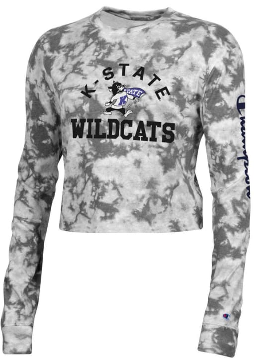 Show your K-State Wildcats spirit in this K-State Wildcats Black T-Shirt! This K-State Wildcats Crush Dye Crop Long Sleeve T-Shirt makes a great layer for cooler nights cheering on the Wildcats. Featuring a center front screen print team name and logo with Champion logo on left sleeve, this K-State Wildcats Long Sleeve LS Tee is an essential addition for every fan. Fear The Cats!