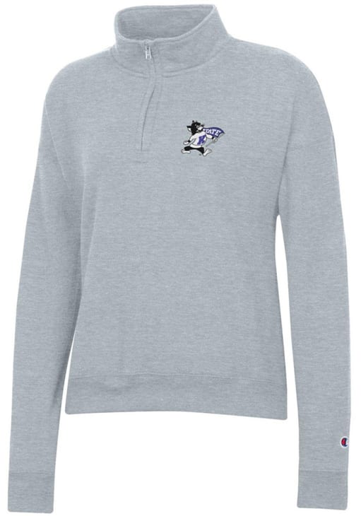Embrace the warmth and showcase your Wildcats pride with our K-State Wildcats Long Sleeve Qtr Zip. This Womens Grey Powerblend Long Sleeve Pullover offers a screenprint team name on left chest for the perfect combination of comfort and style. Elevate your everyday look with this must-have K-State Wildcats Long Sleeve Qtr Zip.