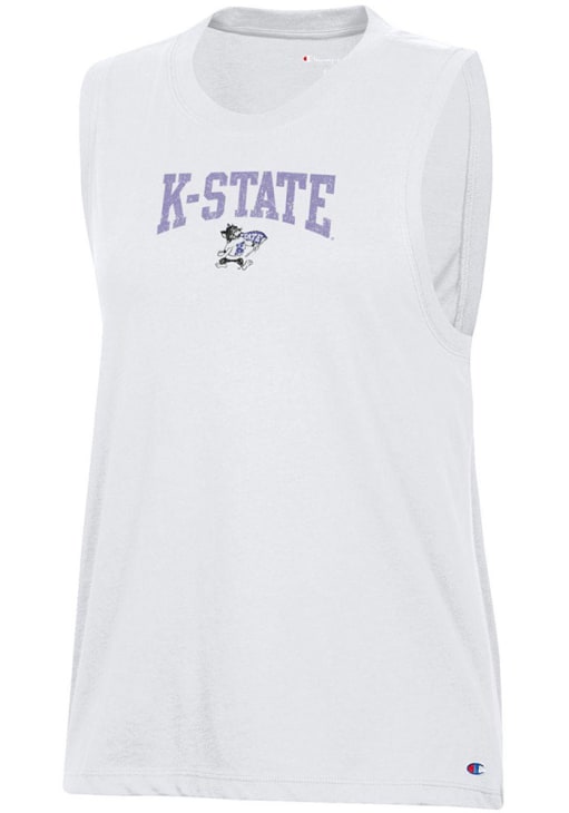 Elevate your tailgating style with this K-State Wildcats Womens Tank Top. Stay fashionable and comfortable in the refreshing White Muscle Sleeveless Shirt. Discover the enticing details of this K-State Wildcats Tank Top, showcasing a screenprint team name on center chest that's sure to impress.