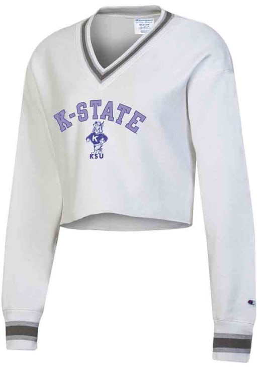 Gear up for the ultimate game day experience with this remarkable K-State WildcatsWomens White RW Cropped Crew Sweatshirt! Designed with the true fan in mind, this Wildcats Long Sleeve Sweatshirt features a screen print team name and logo on center chest. Stay warm and comfortable with this Womens K-State Wildcats Wildcats Crew Sweatshirt.