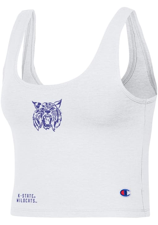 Elevate your tailgating style with this K-State Wildcats Womens Tank Top. Stay fashionable and comfortable in the refreshing White Scoop Crop Sleeveless Shirt. Discover the enticing details of this K-State Wildcats Tank Top, showcasing a screen print team logo on center chest that's sure to impress.