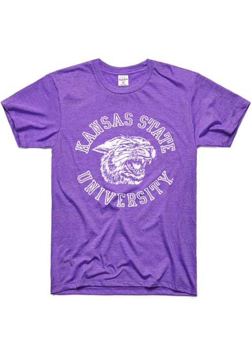 Support your K-State Wildcats in this Purple Short Sleeve Fashion Tee! This Retro Fashion T Shirt features a screen print Kansas State arched over Retro Wildcat with University below. Be ready to yell "Fear The Cats" when you wear this K-State Wildcats Short Sleeve Fashion T Shirt in your favorite stadium or on the street.