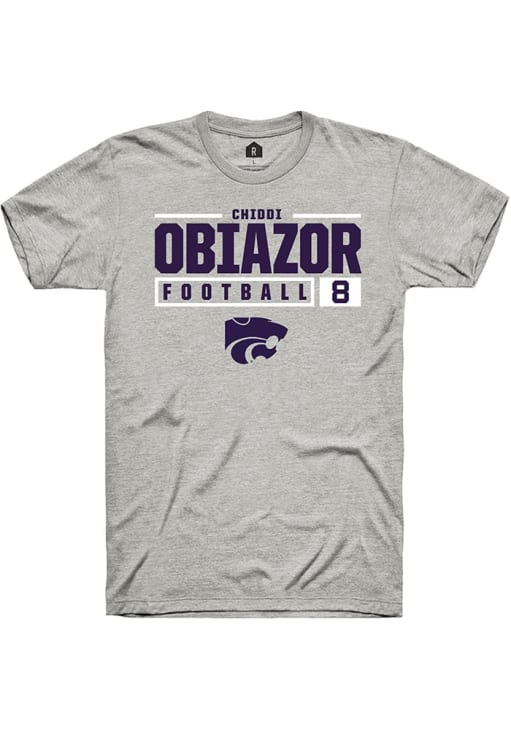 Chiddi Obiazor Ash K-State Wildcats NIL Stacked Box Short Sleeve T Shirt