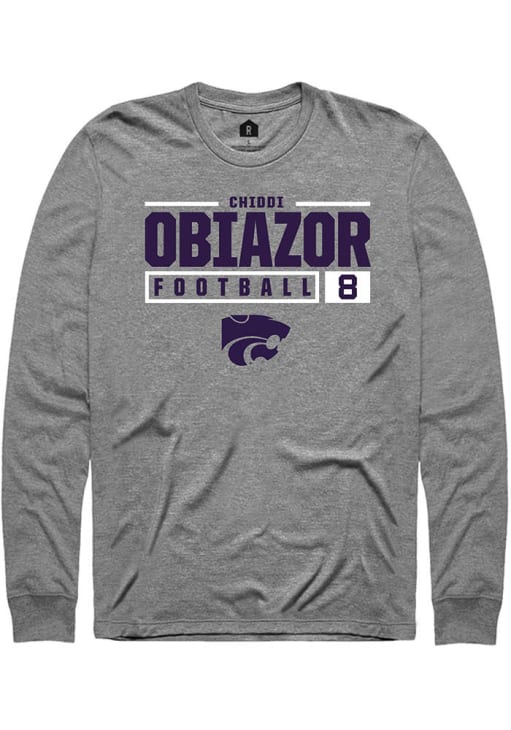 Show your K-State Wildcats spirit in this K-State Wildcats Graphite T Shirt! This K-State Wildcats NIL Stacked Box Long Sleeve T Shirt makes a great layer for cooler nights cheering on the Wildcats. Featuring a custom graphic with player's name and number, this K-State Wildcats Long Sleeve Tee is an essential addition for every fan. Fear The Cats!