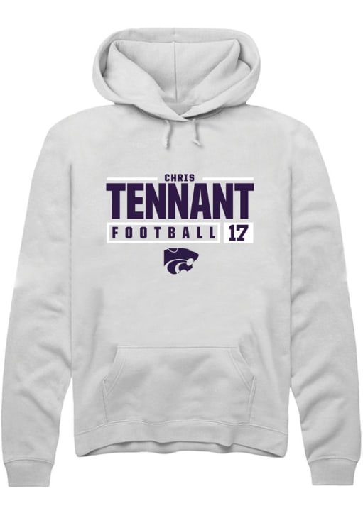 Chris Tennant Rally Mens White K-State Wildcats NIL Stacked Box Hooded Sweatshirt