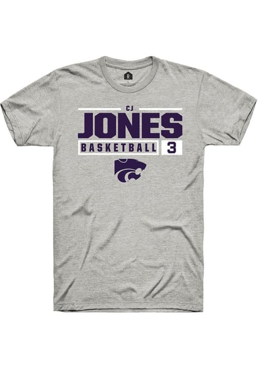 Cj Jones Ash K-State Wildcats NIL Stacked Box Short Sleeve T Shirt