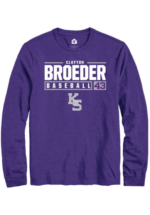 Clayton Broeder Rally Mens Purple K-State Wildcats NIL Stacked Box Tee