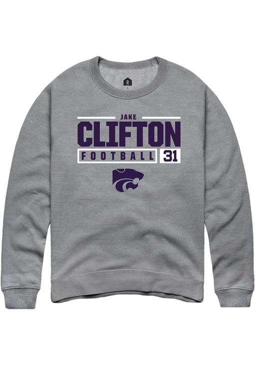 Jake Clifton Rally Mens Graphite K-State Wildcats NIL Stacked Box Crew Sweatshirt
