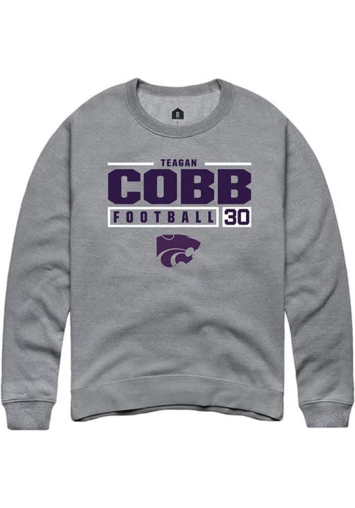 Teagan Cobb Rally Mens Graphite K-State Wildcats NIL Stacked Box Crew Sweatshirt