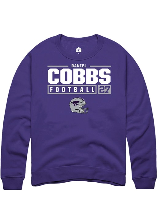 Daniel Cobbs Rally Mens Purple K-State Wildcats NIL Stacked Box Crew Sweatshirt