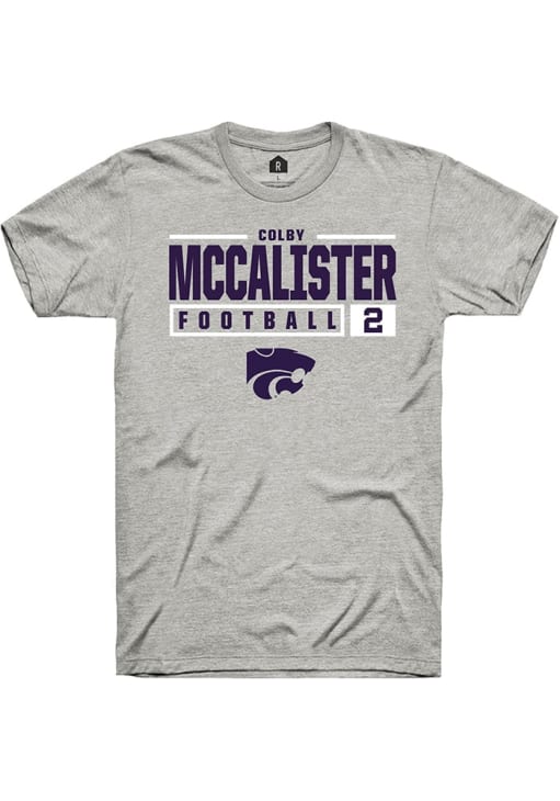 Colby McCalister Ash K-State Wildcats NIL Stacked Box Short Sleeve T Shirt