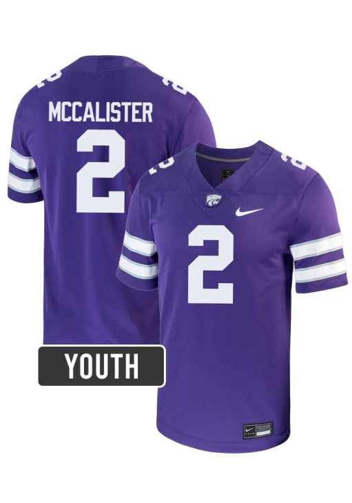Size Chart for Colby McCalister Nike Youth Purple K-State Wildcats NIL Game Football Jersey Jersey