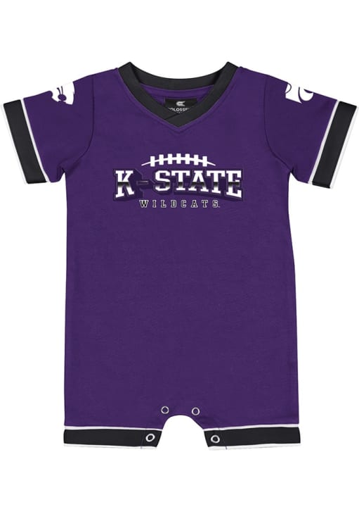 Your little Wildcats fan will look adorable in this Baby Purple K-State Wildcats Candy Kingdom One Piece! This K-State Wildcats Romper features a rubberized print.