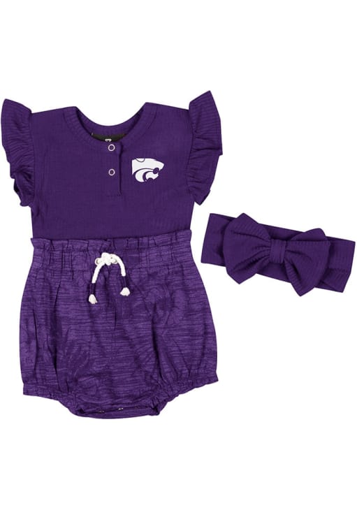 Your little Wildcats fan will look adorable in this Baby Purple K-State Wildcats Fern Headband Set One Piece! This K-State Wildcats Romper features a screenprint team graphic.
