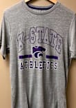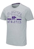 Display your team spirit with this remarkable K-State Wildcats Grey Ducky Tie Short Sleeve T Shirt! The K-State Wildcats Short Sleeve Tee showcases a distressed water based print of "K-State" arched over power cat logo with "Athletics" on front chest that truly sets it apart. Stand out from the crowd and proudly declare your allegiance to the Wildcats with this exceptional Grey K-State Wildcats T Shirt. Fear The Cats!