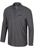 Embrace the warmth and showcase your Wildcats pride with our K-State Wildcats Long Sleeve Qtr Zip Pullover. This Mens Charcoal Hartman Long Sleeve Pullover offers a rubberized print of team logo on left chest with mascot name on back neck for the perfect combination of comfort and style. Elevate your everyday look with this must-have K-State Wildcats Long Sleeve Qtr Zip Pullover.