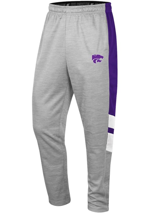 Proudly display your Wildcats pride in comfort with these K-State Wildcats Mens Grey Pants! Whether you're hitting the golf course or enjoying a leisurely day out, these stylish K-State Wildcats Bushwood Fleece Track Pants are the perfect choice. With a rubberized team logo on left hip, these K-State Wildcats Pants will give you all the spirit you need!