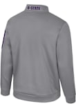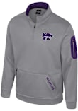 Embrace the warmth and showcase your Wildcats pride with our K-State Wildcats Long Sleeve Qtr Zip Pullover. This Mens Grey Mainframe Long Sleeve Pullover offers a team logo rubberized print on left chest and team name on right side of pocket with state on back collar for the perfect combination of comfort and style. Elevate your everyday look with this must-have K-State Wildcats Long Sleeve Qtr Zip Pullover.