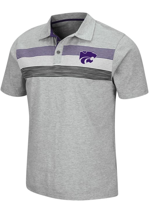 Enhance your professional style with this striking Mens Grey Short Sleeve Polo Shirt! Showcase your team pride among colleagues with this exceptional K-State Wildcats Grey Stinson Short Sleeve Polo. Stand out and make a statement in this K-State Wildcats Short Sleeve Polo, featuring a embroidrery of team logo on left chest with team color stripes across chest that adds a touch of distinction to your look.