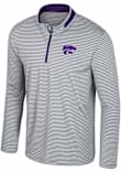 Embrace the warmth and showcase your Wildcats pride with our K-State Wildcats Long Sleeve Qtr Zip Pullover. This Mens Purple Blackett Long Sleeve Pullover offers a screenprint team logo on left chest for the perfect combination of comfort and style. Elevate your everyday look with this must-have K-State Wildcats Long Sleeve Qtr Zip Pullover.