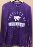 Show your K-State Wildcats spirit in this K-State Wildcats Purple T Shirt! This K-State Wildcats High Fives Long Sleeve T Shirt makes a great layer for cooler nights cheering on the Wildcats. Featuring a washed out print of "Property Of" arched over team logo and "K-State Wildcats" on front chest, this K-State Wildcats Long Sleeve Tee is an essential addition for every fan. Fear The Cats!