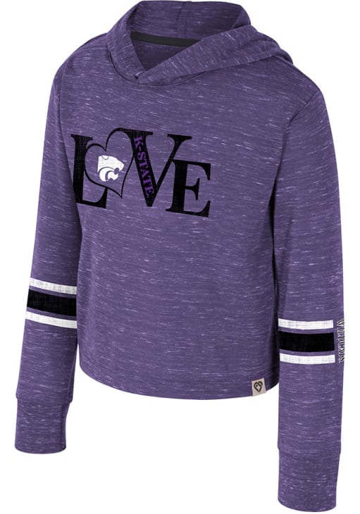 Show your style at school in this Toddler Girls Purple K-State Wildcats Fleet Hooded T Shirt! This Long Sleeve Tee features a screenprint team graphic. You'll be cozy and comfortable head to the game or class with the Wildcats Toddler Girls K-State Wildcats T Shirt.