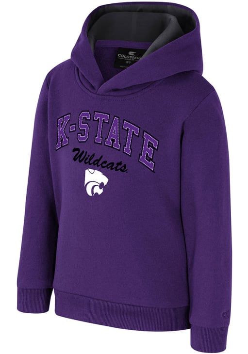 Product Details Product Details Second color inner hood bucketTeam color twill neck tapeRib cuffsRib bottom bandScreen print graphic center chestPerfect for any young sports fan!70% COTTON / 30% POLYESTERImport, Domestic Officially Licensed Go to gamedays in style in this Toddler Purple K-State Wildcats Colosseum Centauri Hooded Sweatshirt! This Wildcats Hoodie features a screenprint team graphic that will be sure to keep you warm and cozy.