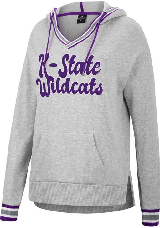 Embrace your Wildcats pride and showcase your team spirit with confidence in this K-State Wildcats Long Sleeve Hoodie! Stay warm and stylish with the K-State Wildcats Womens Grey Andy Rib Trim Hooded Sweatshirt. Designed with applique team name on center chest, this Wildcats Long Sleeve Hoodie is a must-have for dedicated fans.