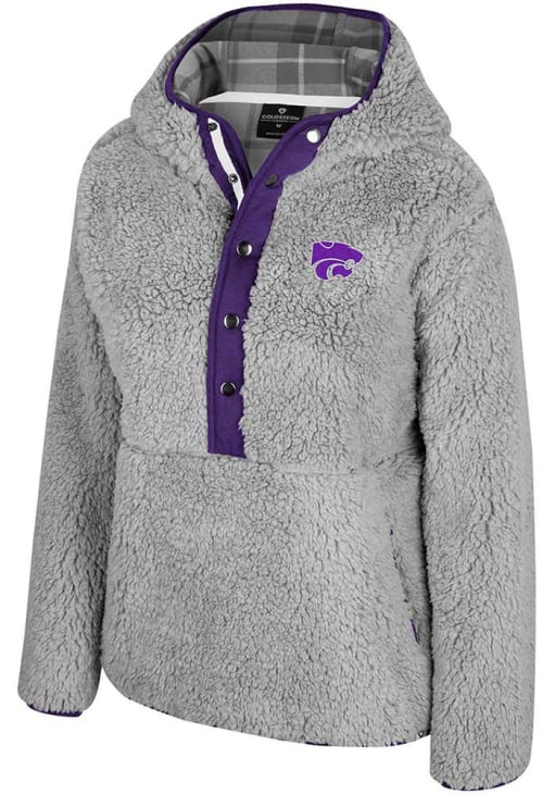 Embrace your Wildcats pride and showcase your team spirit with confidence in this K-State Wildcats Long Sleeve Hoodie! Stay warm and stylish with the K-State Wildcats Womens Grey Matilda 1/2 Zip Hooded Sweatshirt. Designed with embroidered team logo on left chest, this Wildcats Long Sleeve Hoodie is a must-have for dedicated fans.