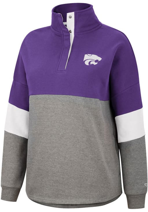 Embrace the warmth and showcase your Wildcats pride with our K-State Wildcats Long Sleeve Qtr Zip. This Womens Purple Magazine Oversized Long Sleeve Pullover offers a embroidered team logo on left chest with applique team name across back yoke for the perfect combination of comfort and style. Elevate your everyday look with this must-have K-State Wildcats Long Sleeve Qtr Zip.