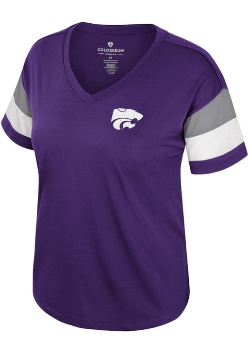 Display your team spirit with this remarkable K-State Wildcats Purple Sparkle Short Sleeve T-Shirt! The K-State Wildcats Short Sleeve Tee showcases a screen print with small rhinestone overlay team logo on left chest that truly sets it apart. Stand out from the crowd and proudly declare your allegiance to the Wildcats with this exceptional Purple K-State Wildcats T-Shirt. Fear The Cats!