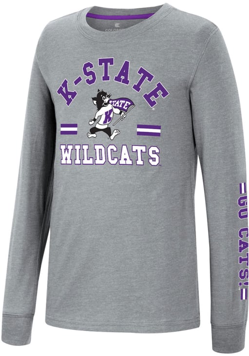 Size Chart for Youth K-State Wildcats Grey Colosseum GCC SMU Roof Long Sleeve T-Shirt
