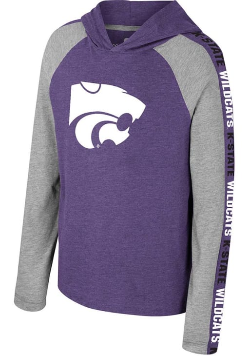 Show your support for Wildcats in this Youth Purple K-State Wildcats Long Sleeve Fashion Tee! This Starfighter Hooded T-Shirt features a screenprint team graphic that is sure to keep you warm and cozy. Get ready to show pride for your favorite team as you cheer "Fear The Cats"