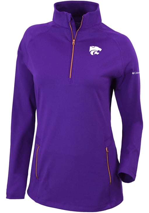 Embrace the warmth and showcase your Wildcats pride with our K-State Wildcats Long Sleeve Qtr Zip. This Womens Purple Heat Seal Omni Wick Outward Nine Long Sleeve Pullover offers a heat seal team logo for the perfect combination of comfort and style. Elevate your everyday look with this must-have K-State Wildcats Long Sleeve Qtr Zip.