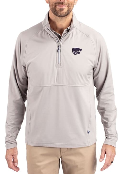 Embrace the warmth and showcase your Wildcats pride with our K-State Wildcats Long Sleeve Qtr Zip Pullover. This Mens Grey Adapt Eco Hybrid Long Sleeve Pullover offers a wind resistant recycled shell for the perfect combination of comfort and style. Elevate your everyday look with this must-have K-State Wildcats Long Sleeve Qtr Zip Pullover.