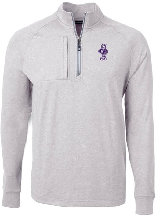 Embrace the warmth and showcase your Wildcats pride with our K-State Wildcats Big and Tall Qtr Zip. This Mens Grey Adapt Eco Vault Big and Tall Pullover offers a wind resistant recycled shell for the perfect combination of comfort and style. Elevate your everyday look with this must-have K-State Wildcats Big and Tall Qtr Zip.