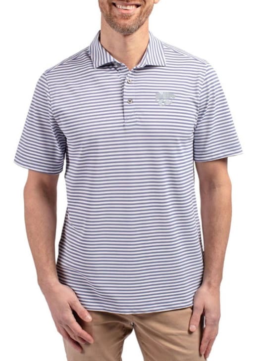 Mens K-State Wildcats Pink Cutter and Buck Virtue Eco Pique Stripe Short Sleeve Polo Shirt