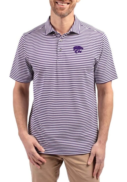 Enhance your professional style with this striking Purple Big and Tall Polo! Showcase your team pride among colleagues with this exceptional K-State Wildcats Purple Virtue Eco Pique Stripe Big and Tall Golf Shirt. Stand out and make a statement in this K-State Wildcats Big and Tall Golf Shirt, featuring a stripe pattern that adds a touch of distinction to your look.