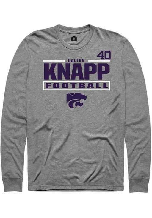 Embrace the spirit of your favorite player in this K-State Wildcats Graphite Football NIL Stacked Box Dalton Knapp Long Sleeve Player Tee! This Player T Shirt features a NIL graphic, so everyone will know you cheer for K-State Wildcats, Dalton Knapp! This is the perfect Wildcats Player Tee for game days. Fear The Cats!