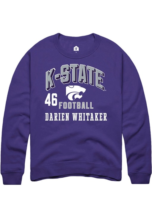 Support your K-State Wildcats and favorite Darien Whitaker in this K-State Wildcats Mens Purple Football NIL Arch Logo Player Crew. This Crew Sweatshirt features a NIL graphic, and is sure to stand out in the stadium. Perfect to wear on game day or any day!